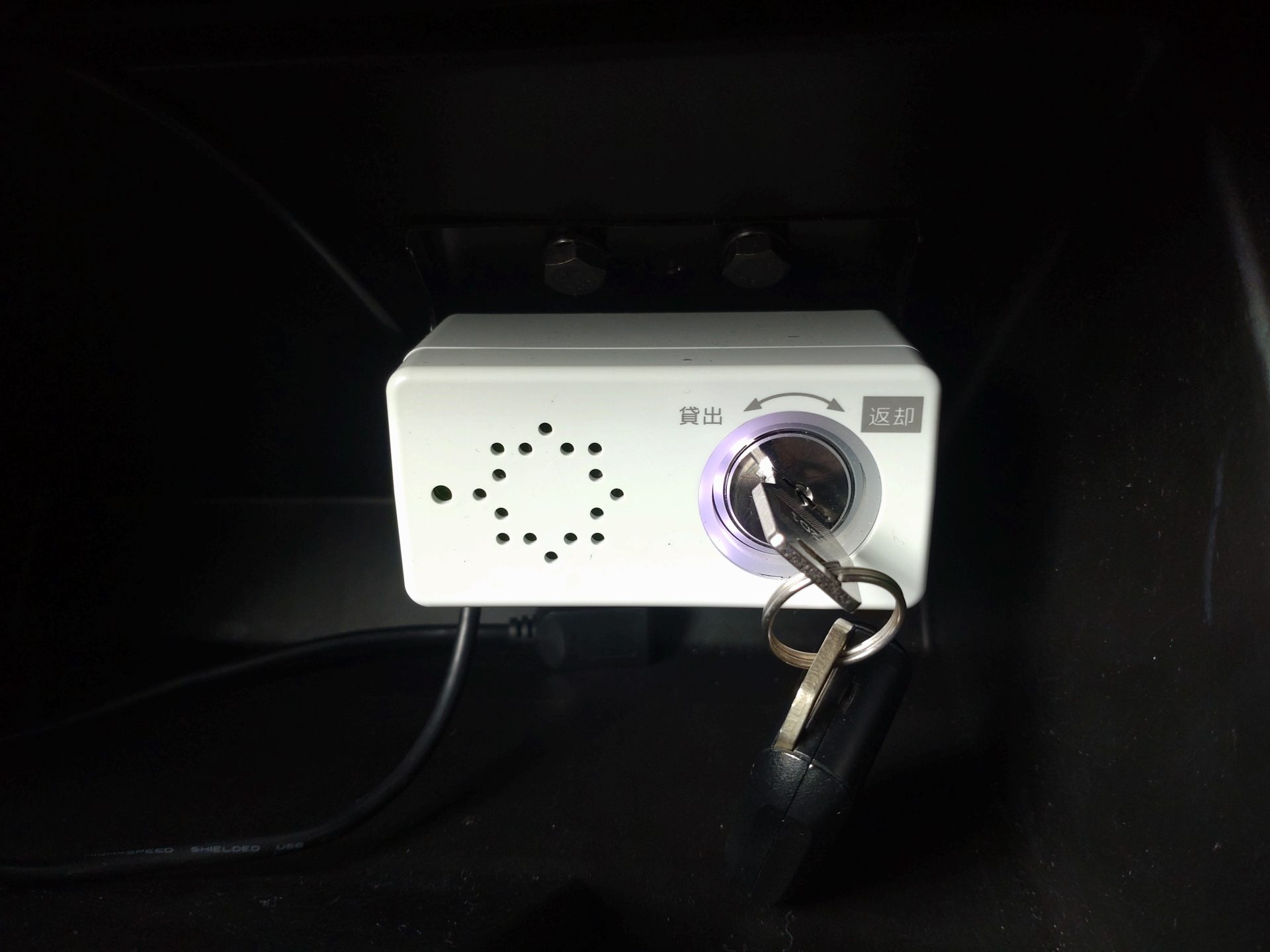 電子キーで車のロックが解除されます。その時にアプリ画面に「利用を開始しました。 エンジン始動前に、助手席前のグローブボックス内にあるエンジンキーを「返却」から「貸出」に回し、キーを抜いてください。」というメッセージがポップアップされるのですが、それを見ていなかった私。